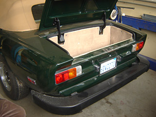 Im Detail: Ausschnitte von Seitenblinkern und Löcher von Stosstangen-Aufnahmen wurden in der Aluminium-Carrosserie stumpf verschweisst. Das unterbrochene Heckblech wurde entsprechend der Europa-Ausführung dieses Modells durchgezogen. Die grossen US-Stosstangen wurden durch schlanke Chromstangen ersetzt. Halter und Aufnahmen haben wir dabei selber angefertigt.