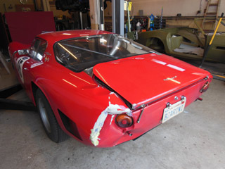 Durch den Kontakt mit einer Leitplanke an den Le Mans Classic 2013 wurde die Seitenwand und das Heck leicht beschädigt. Da es sich hier um eine Aluminium-Carrosserie handelt, ist die Reparatur sehr aufwändig.