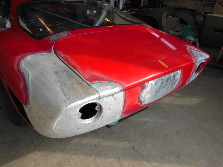 Durch den Kontakt mit einer Leitplanke an den Le Mans Classic 2013 wurde die Seitenwand und das Heck leicht beschädigt. Da es sich hier um eine Aluminium-Carrosserie handelt, ist die Reparatur sehr aufwändig.