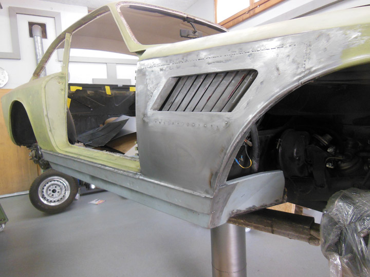 Da die Mechanik des Fahrzeugs in einem top Zustand ist, wurde darauf verzichtet, diese komplett auszubauen. Stattdessen wurde das Fahrzeug soweit nötig teilzerlegt, um die verschiedenen Carrosseriearbeiten auszuführen. Diese beinhalten die Behandlung altersbedingter Roststellen und teilweise frühere Reparaturabschnitte wieder den Originalzustand zurück zu führen.