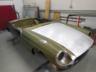 Das Gute an einem MG ist, dass fast alle Teile noch erhältlich sind, weniger gut ist mitunter die Passgenauigkeit. Deshalb mussten auch hier mit viel Aufwand sämtliche Ersatzbleche korrigiert, nachgebessert, erweitert oder verjüngt werden. Die entlackte und entrostete Carrosserie ergab eine gute Grundlage für die Wiederherstellung, welche sehr aufwändig ausgeführt wurde. Umso schöner steht das Endprodukt heute da.